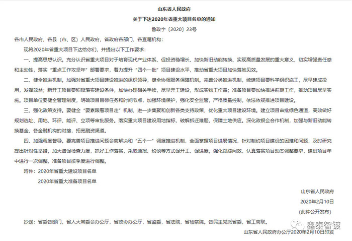 2020年2月12日,山東省人民政府發(fā)布了《關(guān)于下達2020年省重大項目名單的通知魯政字 [2020] 23號》。我司項目“日照金屬表面處理中心生態(tài)產(chǎn)業(yè)園”名列全省233個項目中第56位。