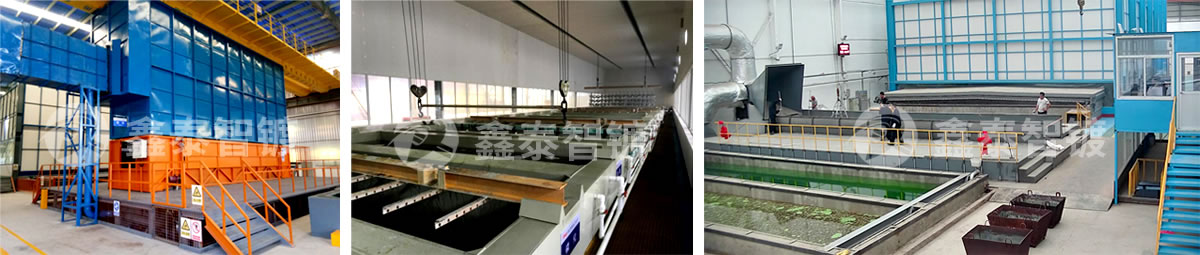線型描述:從黑件上掛到下掛成一條直線,全程“側進側出”。廠房要求:單跨廠房,跨距為鋅鍋長度2倍。物流分析:物流距離遠,中轉環節多;掛具回流困...
